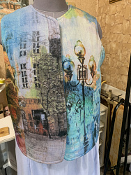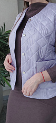 Выкройка понравилась, шила из двухсторонней стежки. Не стала делать карманы, поставила кнопки. Увеличила пройму на 1,5 см, но может быть зря отошла от выкройки, пройма стала оттопыриваться.