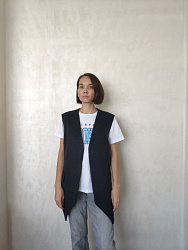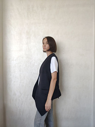 Выкройка покорила меня своим неровным низом и свободным кроем. Пошив оказался сложнее, чем я ожидала, и в процессе были некоторые сложные для меня моменты. Но когда я дошила жилет, то поняла, что все старания были не напрасны.
