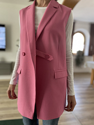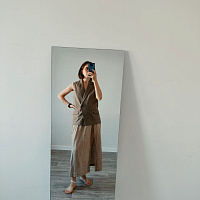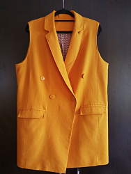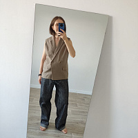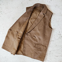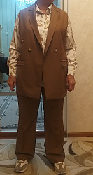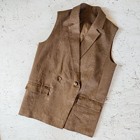 Жилет очень стильный и классный. Шила изо льна со стрейчем. Подкладка - вискоза. Это не первое мое изделие подобного плана, но почему-то возникли сложности с подкладом: левая полочка подклада оказалась правой, в итоге не сошелся разрез на спине. Корректировала по ходу дела, но так и не поняла, недостаток ли это рекомендаций в инструкции или я где-то ошиблась.