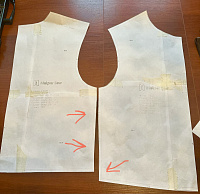 Сшила жилет из трикотажного шерстяного джерси. Когда вырезала выкройку, поняла, что спинка короче полочки ( см. Фото). Удлинила, соответственно, спинку.