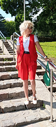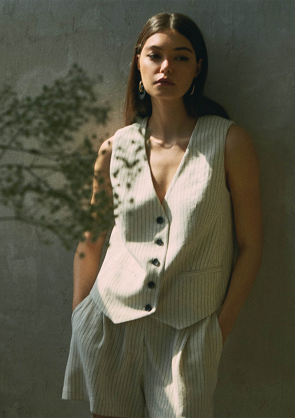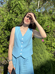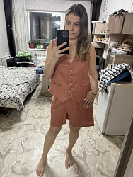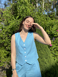 Легкий в пошиве, модный жилет. Шила из костюмного льна. В комплект выбрала более длинную модель шорт Veta.