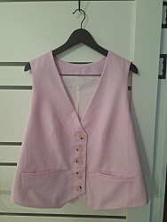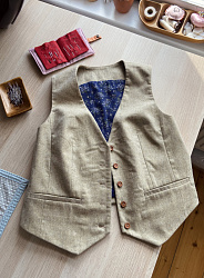 Жилет получился отличный. Остался кусок костюмной ткани и как раз хватило на жилет. Мне понравилось,что он свободный в талии. Шьётся легко.