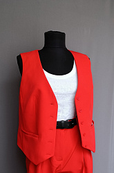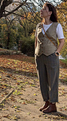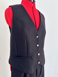 Всё понравилось - выкройка, инструкция и сам пошив. Сшила из плательно -костюмной ткани с шерстью и кашемиром, а на подкладку - теплый хлопок, поэтому жилет получился согревающий и уютный. Ношу на футболку и с кардиганом. Силуэт прямой, т.е. не прилегающий, очень комфортно в жилете