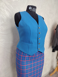 На макете немного не хватило ширины жилета по низу спинки, морщило в районе талии на спинке, поэтому по нижнему срезу в средний шов и рельефы добавила по 1 см по линии низа и свела к талии. По боковым швам оставила как есть, хотя там даже как будто немножко лишняя ширина по низу.