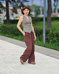 В восторге от своего костюма! Сначала сшила брюки, а из выпадов ещё и жилет получился. Брюки по выкройке Enar. Не устану хвалить посадку и инструкции. Хэлперы, вы просто умницы! Жилет сшила даже без примерок, сразу собрала полностью и сел, как влитой🥰