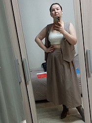 Очень понравилась выкройка. Сошью обязательно еще, но буду углублять пройму, для меня тесновата).