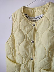 Жилет очень понравился! Шьётся быстро, легко. Продублировала подклад флисом, получился теплым. Кнопки пока не стала ставить, нравится без них:)