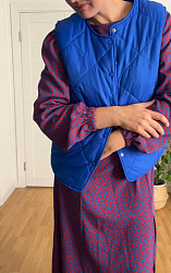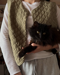 Жилет - милый. Края обработаны готовой х/б косой бейкой, вместо пуговиц поставила кнопки. Швы отсрочила на 0,1мм вразутюжку.